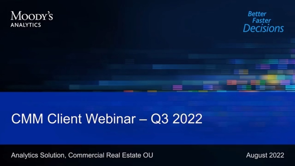 Moody’s Analytics CRE is pleased to announce a new quarterly client update to keep you up to date and get valuable insights. Participate in a brief Q&A session at the end of the webinar.