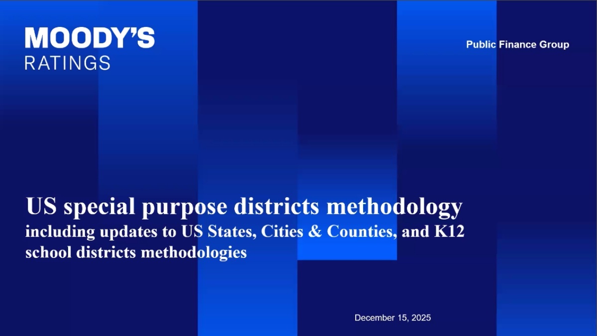 Moody's recently published a new methodology for rating US Special Purpose Districts. Analysts will provide an overview of the scope and framework of the special purpose district methodology. Analysts will also discuss the universe of credits placed under review and when the market can expect the ratings to be resolved.