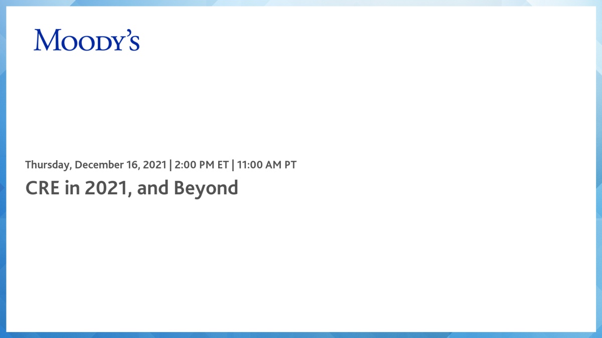 SpeakersKeith Banhazl Managing Director, Head of Commercial Real Estate Finance Moody’s RatingsVictor Calanog, PhD Head of CRE Economics Moody's Analytics